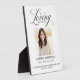 Personnalisez cette plaque mémorial funéraire élégante simple avec le nom et les dates de votre proche. Typographie de script élégante moderne sur un fond blanc propre. Ajout parfait à votre événement de souvenir de mémorial funéraire et un souvenir. Photo et texte faciles à personnaliser. Nos sincères condoléances pour votre perte.