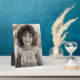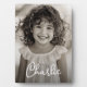 Plaque photo avec votre photo de famille personnalisée avec le nom ou autre texte personnalisé dans une police script de style moderne comme une couverture blanche.