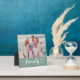 Décor maison sur table personnalisée avec une photo de famille préférée avec un design minimaliste de la typographie blanche "famille" qui comprend élégamment fleurir et détails de coeur. Notez que l'arrière - plan gris vert et le texte blanc peuvent être customisés. Une idée cadeau unique pour vos proches !