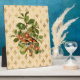 Vintage woodland botanical illustration of mushrooms, flowers and a variety of leaves on creamy peach and gold harlequin background.