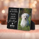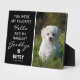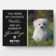 Plaque commémorative émouvante avec une photo de votre animal de compagnie bien-aimé et la citation de condoléances qui dit "Tu étais mon bonjour préféré et mon au revoir le plus difficile", une empreinte de patte avec un cœur à l'intérieur, le nom de votre animal et les dates de leurs années de vie. Un beau souvenir pour une famille qui aimait tendrement son chien/chat.