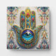 Plaque Photo Filigree couleur or bleu-vert troisième oeil Hamsa