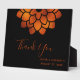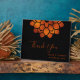 Le panneau de table en Merci foncé et dramatique présente une fleur en cuivre métallique moderne avec du texte personnalisable sur arrière - plan noir.
