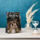 Belle plaque de photo de premier Noël en tant que M. et Mme Nom de famille sur le thème des flocons de neige imprimée avec votre photo couvrant la plaque, jolis flocons de neige blancs, baies de houx rouges avec des feuilles vertes, et votre nom et l'année.