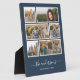 Plaque photo avec six photos disposées en grille, chacune avec une bordure blanche autour et sur un fond de couleur modifiable (cliquez sur Personnaliser pour changer la couleur de fond). Vous pouvez également ajouter votre nom de famille dans une police de calligraphie élégante et l'année de création. Parfait pour les cadeaux de mariage, les souvenirs de famille, etc.