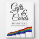 Ce magnifique panneau ou plaque d'auto permettra à vos invités de savoir où laisser leurs cadeaux et cartes. Coordonnée avec notre Gay pride Rainbow Mariage Suite. Il présente une image d'une rangée de drapeaux gay pride arc-en-ciel, avec un espace pour entrer les noms du couple.