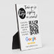 Plaque de demande de commentaires Google moderne et tendance. Caractéristiques de design script de typographie branché '' merci de soutenir notre entreprise'' avec votre logo, site Web, logo google et code qr avec demande de révision.