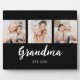 Grandma Established Modern Script 3 Photo Black Plaque. To customize, replace the photos and change the year.