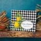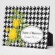 Plaque de nom d'entreprise motif, noir et blanc, moderne et audacieuse, avec dessin de rose jaune féminin. Personnalisez cette plaque chic de nom d'entreprise en ajoutant votre nom et vos informations commerciales à la zone de texte personnalisée.