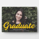 Célébrez la réussite de votre diplômé avec une photo tenue de diplôme personnalisée. La plaque présente la photo horizontale du diplômé avec le "Graduate" en gras jaune. Personnalisez la plaque photographique de l'obtention du diplôme en y ajoutant le nom, l'école et l'année de fin d'études.