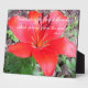 Grande Lilie rouge en pleine floraison photographie capturée avec une citation qui disait : "La gratitude est la plus belle fleur qui provient de l'âme" par Henry Ward Beecher