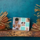 Première fête des pères idée cadeau -Une plaque photo moderne avec une grille de collage créée avec 4 photos et message sur un bloc de couleur verte tendance.