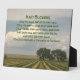 Plaque décorative de 10 x 8 pouces avec charnière représentant une photo de terres agricoles et de vastes cieux remplis de nuages ainsi qu'une bénédiction irlandaise traditionnelle imprimée en lettres de style Celtique vert. Fait un grand cadeau pour la famille et les amis!