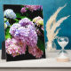Plaque Photo Jardin d'hortensias, fleurs rose, bleu, violet