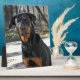 Cette belle plaque photo Rottweiler avec chevalet présente notre intelligente Heidi, posant pour la caméra et se penchant légèrement en prévision de jouer avec son jouet préféré, un seau. Cette plaque photo Rottweiler montre les qualités incomparables de la race Rottweiler et est parfaite pour chaque amoureux des chiens.