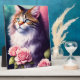 Plaque Photo Joli Maine Coon & Fleurs Table