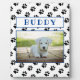 Jolies empreintes de pattes Bleu Objet-souvenir Plaque photo de chien. Le classeur contient une photo d'un animal, le nom de l'animal en bleu et un motif d'empreintes de pattes de chien. Personnalisez avec la photo de votre chien ou de tout autre animal et le nom de votre chien ou animal. Un beau cadeau souvenir ou en mémoire pour un propriétaire de chien.