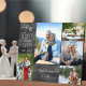 Plaque de photo d'anniversaire de mariage que vous pouvez personnaliser pour n'importe quelle année et 5 de vos clichés préférés. Le texte indique "# ans dans notre bonheur éternel" et le modèle est prêt à être personnalisé avec l'année d'anniversaire, vos noms et la date de début. Le design présente un aspect bois de campagne rustique gris, avec une typographie lettre cursive décontractée et fine. Téléchargez vos photos, en travaillant de gauche à droite, qui seront affichées dans un mélange de formats portrait, carré et paysage. Si vous rencontrez des problèmes avec le placement de vos images, essayez de les rogner à la forme pertinente avant de les télécharger.