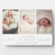 La plaque de garde photo simple et moderne comporte trois de vos photos préférées de nouveau-nés alignées côte à côte, avec un bandeau blanc sur le bas, "amour au premier regard" en gris clair, flanqué du nom et des statistiques de naissance de votre petit. Un design moderne et minimaliste neutre pour le genre qui est un cadeau parfait pour les nouveaux parents.