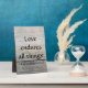 Beau message de foi et d'amour durable qui trouve une place de choix sur ce design patiné. Une surface en bois qui a connu son lot d'épreuves et de tribulations, usée par les intempéries et le temps. Pourtant, elle est forte et infinie. Témoin fidèle des liens du mariage au fil des ans. Premier Corinthiens 13:7 verset biblique.