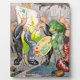 Illustration drôle de Theodor Kittelsen de sa série de couleurs d'eau intitulée "Har Dyrene Sjæ l ?" (Les animaux ont-ils des âmes?), publié en 1893. Cette illustration s'intitule "Brilliant !" Une grenouille avec une mop de cheveux verts tenant une palette de couleurs de peinture regarde fièrement son tableau sur un chevalet, tandis que des limaces en costume admirent son travail.