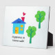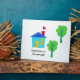 Une maison "faite maison", entourée d'arbres, avec le proverbe anglais : "Le bonheur est fait maison !" Parfait pour le couple qui achète sa première maison, ou pour quiconque est chez lui est plein d'amour! (Le mot sur le toit est : LOVE)