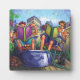 Art de la lecture estivale de Traci Van Wagoner présente un garçon et une fille assis dans un jardin urbain, les pieds dans un bain cool, en train de boire de la limonade et de lire des livres. Un chat et un chien s'allongent à leurs pieds sur le pont de bois. Parfait pour les amateurs de livres et de bibliophiles de tous âges.
