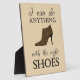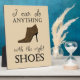 Ce joli design comporte une chaussure à talon élevé et le texte "Je peux faire n'importe quoi avec les bonnes chaussures". Le cadeau parfait pour tous les amateurs de chaussures !