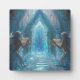 Deux sirènes aux cheveux argentés gardent un escalier cristallin qui mène à un sanctuaire sous-marin lumineux.
