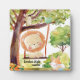 Belle conception fantaisiste avec un lionceau jouant sur la balançoire avec d'autres animaux tels que le renard, le lapin, les oiseaux et un papillon aux éléments de nature rougissante. Ajoutez votre enfant ou un nom de destinataire pour ajouter une touche personnelle !