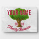 Celebrate family with this contemporary healthy vibrant green tree with brown bark and dark red lettering. Perfect for your summer cookout or travel getaway family reunion!
