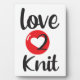 Tabletop chevalet avec lettres noires et rouges, "Love 2 Knit. taille 5x7. Idée cadeau pour une personne qui aime tricoter. Asseyez-vous sur votre bureau ou table d'artisanat. Salon des fournisseurs.