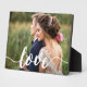 Simple et moderne, la plaque de conservation de photos mariages présente votre photo préférée horizontale ou orientée paysage avec "amour" comme un texte blanc superposé dans un script de calligraphie lettré à la main.