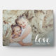 Cette plaque photo en forme de tablette possède un chevalet intégré pour l'affichage sans cadre de votre photo préférée. Comprend le mot LOVE dans un beau script blanc (peut être supprimé ou modifié) et toute autre information que vous voulez inclure. Créez un souvenir à donner en cadeau ou pour vous-même.