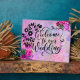 "Bienvenue à Notre Mariage" citation en caractères gras. Avec deux des couleurs tendance de la saison 2021. Lumineuse, vibrante, Amethyst violet et rose framboise arrangements floraux sur un arrière - plan de feuilles stylisés et abstraits aquarelles rendent ce design mariage pop. Si vous avez des questions ou des demandes pour d'autres éléments de coordination, veuillez communiquer avec le concepteur à l'adresse lifeinbloom4u@gmail.com. Consultez le tableau "Tendances Mariages" de Life in Bloom (Amethyst Purple et Raspberry Pink) pour une inspiration design - https://www.pinterest.ca/Life_in_Bloom/wedding-trends.