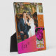 Plaque photo avec vos photos personnalisées sur un design fuchsia rose et orange avec un texte d'amour script. Un boho hippie attrayant pour un fiançailles, un mariage ou un anniversaire. Personnalisable pour d'autres situations.