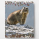 Marmotte alpine (Marmota marmota - Mammal) sur rocher donnant un cri d'alarme, dans les Alpes françaises, département savoyard à La Plagne, en cadre feuille