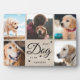Plaque commémorative personnalisée Meilleur chien du monde comprenant 5 de vos photos préférées de votre animal. Personnalisez avec son nom entouré d'empreintes de pattes dans un design de script doux ! C'est la version country toile de lin burlap rustique.