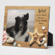 Cadre debout de souvenir / mémorial de photo d'animal de compagnie. Rappelez-vous un animal de compagnie bien-aimé en ayant sa photo appliquée sur cette plaque de scène de plage en acrylique. Coquillages et sable, avec un espace pour un nom et d'autres textes. La formulation de l'exemple est « Dans nos cœurs pour toujours et dans nos pensées toujours."