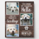 Rappelez-vous votre animal de compagnie et chérissez ces souvenirs spéciaux avec ce médaillon personnalisé en forme de plaque de collage de photos en souvenir de votre animal. Personnalisez-le simplement en téléchargeant 3 photos de votre animal de compagnie bien-aimé et personnalisez le modèle pour rendre cette plaque unique. Elle comporte la douce phrase "tu étais mon bonjour préféré et mon au revoir le plus difficile", leur nom et leurs dates sur un fond à effet de bois rustique. Cette plaque pour animaux de compagnie est le cadeau idéal pour vous-même, vos amis ou votre famille qui ont perdu un animal de compagnie. Affichez-la avec amour et fierté dans votre maison et conservez-la précieusement pour toujours.