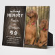 Plaque photo mémorielle pour animal de compagnie avec un fond en bois rustique, une photo pour vos chiens et un modèle de texte commun facile à personnaliser.