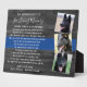 En souvenir affectueux ~ Honorez votre chien policier bien-aimé, agent K9 tombé au champ d'honneur, avec cette plaque photo commémorative du Thin Blue Line Police Dog. Personnalisez avec la photo, le nom et les dates de votre agent K9. Citation : "En souvenir affectueux" - "Plus qu'un partenaire" - Serment du chien policier. Parfait pour le mémorial de l'agent K9 pour la famille ou les services de police pour honorer un chien policier tombé au champ d'honneur. Personnalisez ce mémorial de chien policier avec le nom, la date de fin de service et le texte. Plaque commémorative du chien policier en souvenir affectueux. COPYRIGHT © 2020 Judy Burrows, Black Dog Art - Tous droits réservés. Plaque photo commémorative personnalisée pour l'agent K9.