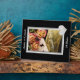 Un joli cadre couleur argent tient votre photo sur cette plaque photo personnalisée de l'anniversaire du Mariage d'argent. Un coeur argenté est en bas à droite. Le texte, également en argent, est entièrement personnalisable, de sorte que vous pouvez le faire dire ce que vous voulez. Vous pouvez même enlever les 25 ans et le faire pour n'importe quelle célébration d'anniversaire, ou même pour une photo mariage. Tout est placé sur un arrière - plan noir dramatique. Choisissez Customiser et utilisez les touches fléchées pour déplacer votre photo dans la meilleure position.