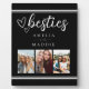 Modern Photo Collage Besties Black and White plaque. Celebrate your unbreakable bond with this "Besties" photo collage tabletop plaque. Featuring a chic black and white design, this keepsake allows you to showcase your favorite memories with your closest friends. The elegant "besties" script font paired with a clean layout makes it a stylish addition to any space. Add your own cherished photos to create a truly unique and heartfelt tribute to your friendship, perfect for birthdays, Christmas gifts, holidays, or just because.