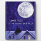 I Love You to the Moon and Back Moon Regarder présente notre art original créé par notre talentueux illustrateur pour enfants, Traci Van Wagoner, d'un père, d'un enfant et d'un chien sur un toit ou leur maison en regardant la pleine lune se lever dans le ciel nocturne avec les mots : I Love You to the Moon and Back. Envoyez à quelqu'un que vous aimez un beau rappel aujourd'hui.