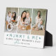 Créez votre propre plaque photo souvenir 'Mummy & Me'. La conception comporte 3 photos portrait de votre choix, le texte mignon 'Mummy & Me' avec deux petits cœurs - Bonne première fête des mères ! un 'avec amour' en écriture calligraphique élégante et le nom de la personne qui l'offre. Un beau cadeau simple pour la fête des mères pour les nouvelles mamans à chérir pour toujours. Le texte peut être changé en n'importe quelle couleur en cliquant sur 'Personnaliser davantage'.