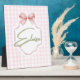 Ajoutez une touche de douceur et d'élégance à la chambre de votre petite avec cette impression personnalisée pour la nurserie de bébé fille. Avec un fond à carreaux rose pâle, un nœud ruban délicat et un nom personnalisable dans une police script charmante, cette œuvre d'art est la touche finale parfaite pour toute nurserie, salle de jeux ou chambre d'enfant.