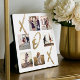 Plaque photo collage moderne et tendance pour jeunes mariés x o x. Design présente un design de jeu de cartes X & O avec X O X affiché dans un script de brosse en faux or tendance. Les autres carrés de jeu sont remplis d'un collage photo pour afficher six de vos propres photos spéciales de mariée.