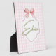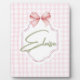 Ajoutez une touche de douceur et d'élégance à la chambre de votre petit bout avec cette impression personnalisée pour la nurserie de bébé fille. Avec un fond à carreaux rose pâle, un nœud en ruban délicat et un nom personnalisable dans une police de caractères script charmante, cette œuvre d'art est la touche finale parfaite pour toute nurserie, salle de jeux ou chambre d'enfant.