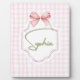 Ajoutez une touche de douceur et d'élégance à la chambre de votre petit bout avec cette impression personnalisée pour la nurserie de bébé fille. Avec un fond à carreaux rose pâle, un nœud ruban délicat et un nom personnalisable dans une police de caractères script charmante, cette œuvre d'art est la touche finale parfaite pour toute nurserie, salle de jeux ou chambre.
